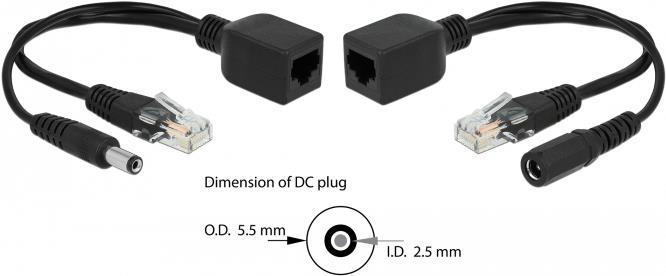 DeLOCK Passive PoE Adapter Set RJ45 DC 5,5 x 2,5 mm - Power Injector - Schwarz (Packung mit 2) (66024)