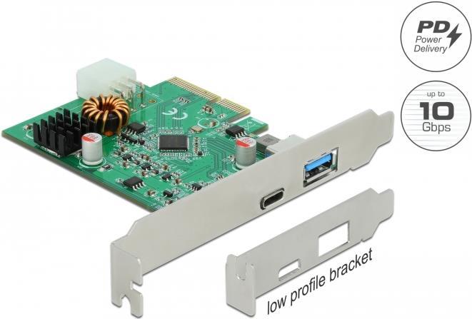 DeLOCK - USB-Adapter - PCIe 2,0 x4 Low-Profile - USB-C 3,2 Gen 2 with Power Delivery x 1 + USB 3,2 Gen 2 x 1 (89001)