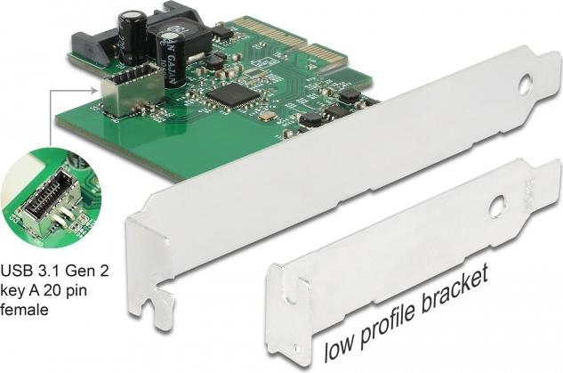 DeLOCK PCI Express Card to 1 x internal USB 3.2 Gen 2 key A 20 pin female - USB-Adapter - PCIe 3.0 x4 Low-Profile - USB 3,2 Gen 2 (intern) x 1
