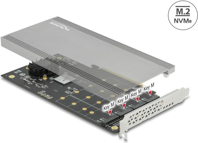DeLOCK PCI Express x16 Card to 4 x internal NVMe M.2 Key M - Schnittstellenadapter - M.2 - Expansion Slot to M.2 - M.2 NVMe Card - 32 GBps - PCIe 3.0 x16