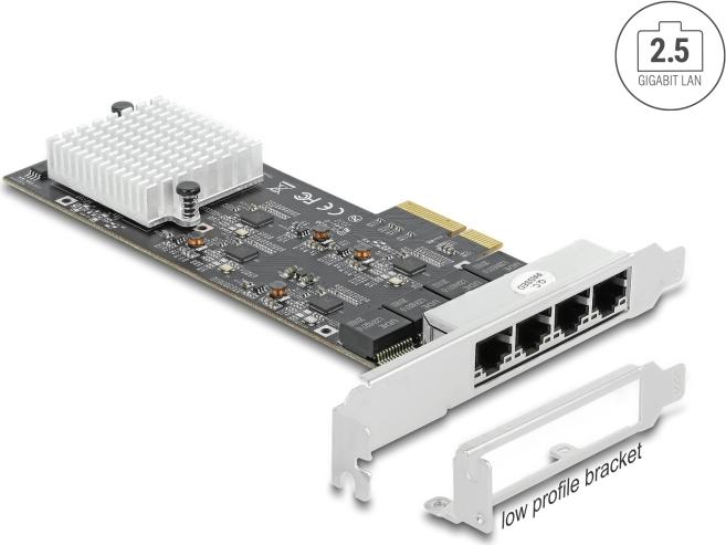 Die PCI Express Karte von Delock bietet vier Netzwerkanschlüsse mit einer Übertragungsrate von bis zu 2500 Mbps. Moderne Dienste und neue Technologien erfordern höhere Bandbreiten. Die NBASE-T-Technologie ermöglicht Geschwindigkeiten von 1 Gbps und 2,5 Gbps mit herkömmlichen Netzwerkkabeln. Die bestmögliche Übertragungsrate wird automatisch eingestellt.