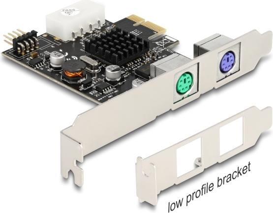 Die PCI Express Karte von Delock erweitert den PC um zwei PS/2 Anschlüsse und einen internen USB 2.0 Pfostenstecker. An die PS/2 Buchsen können verschiedene Geräte wie z. B. eine Tastatur und eine Maus angeschlossen werden.