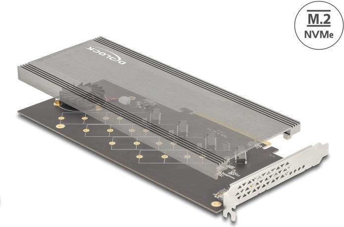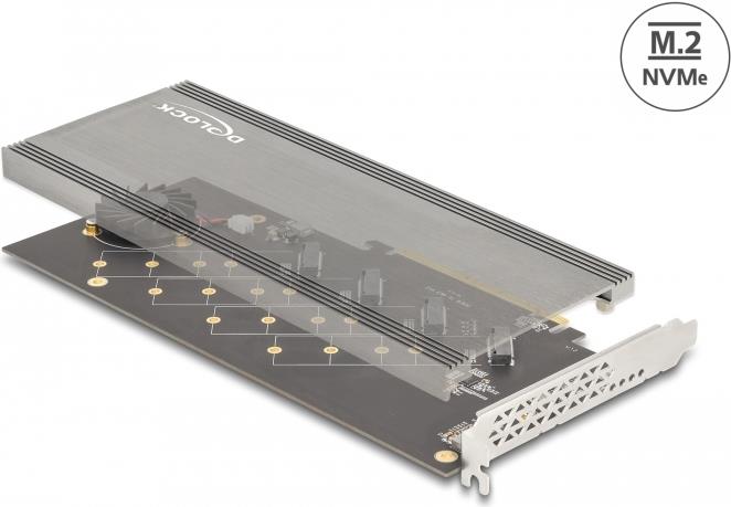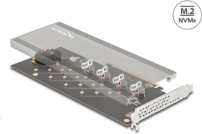 Diese PCI Express Karte von Delock erweitert den PC um vier M.2 Slots. An diese können bis zu vier M.2 SSDs im 2280, 2260, 2242 und 2230 Format angeschlossen werden. Mit Hilfe des großen Kühlkörpers und des Lüfters, ...