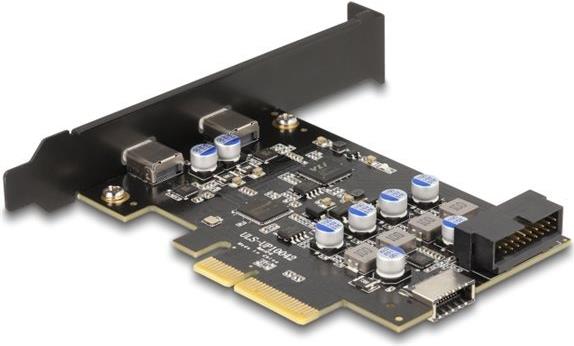 Der Delock USB-Adapter bietet eine vielseitige Lösung zur Erweiterung der Anschlussmöglichkeiten in einem Computersystem. Er verfügt über ein internes Steckkarten-Design und ist mit mehreren Anschlüssen ausgestattet, darunter ein 19-poliger USB 3.0-Header, ein 24-poliger USB-C und ein 20-poliger USB Typ E. Dieser Adapter unterstützt Datenübertragungsraten von bis zu 10 Gbit/s und gewährleistet eine schnelle und effiziente Datenverarbeitung unter Einhaltung der Standards USB 3.0 und xHCI 1.0. Mit der Fähigkeit, zu booten und das USB Attached SCSI Protocol (UASP) zu unterstützen, bietet er robuste Leistung für verschiedene Anwendungen. Dieser Low-Profile-Adapter fügt sich nahtlos in Systeme mit begrenztem Platz ein und verbessert die Konnektivität mit seiner Sammlung von Anschlüssen, einschließlich USB-C, USB und internen USB 3.0-Optionen. Er nutzt die PCI Express 3.0 x4-Schnittstelle und bietet eine kabelgebundene Konnektivitätstechnologie, die ideal für Hochgeschwindigkeitsdatenübertragungen und zuverlässige Netzwerkverbindungen ist. Der integrierte ASMedia-Prozessor sorgt für eine effiziente Verarbeitung von Daten und Konnektivitätsanforderungen.
