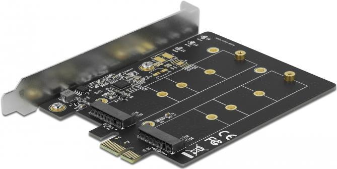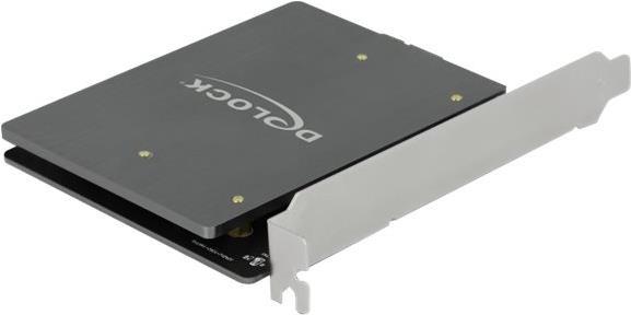 Diese PCI Express Karte von Delock erweitert den PC um zwei M.2 Slots. An die Karte können bis zu zwei M.2 SATA Module im 2280, 2260, 2242, 2230 Format angeschlossen werden. Mit Hilfe des großen Kühlkörpers wird eine ausreichende Kühlung der M.2 Module gewährleistet.