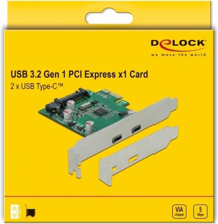 Die PCI Express Karte von Delock erweitert den PC um zwei externe USB-C Ports. An die Karte können verschiedene USB Geräte, wie z. B. Docking Stationen, Card Reader, externe Gehäuse etc., angeschlossen werden.