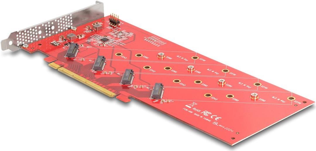 Der Delock-Schnittstellenadapter verbessert die Effizienz der Datenspeicherung und -verwaltung mit seinen vier internen M.2-Erweiterungsschächten. Er ist mit den Formfaktoren M.2 2242, 2260, 2280 und 22110 kompatibel und bietet Optionen für verschiedene Solid State Drives. Dieses Produkt unterstützt die PCIe 4.0 x16-Schnittstelle und bietet S.M.A.R.T.- und TRIM-Unterstützung, um Leistung und Zuverlässigkeit bei der Datenverarbeitung zu gewährleisten. Mit integrierter PCIe-Verzweigung und bootfähiger Funktionalität organisiert dieser Adapter M.2 NVMe-Speicher für eine optimierte Systemleistung. Ein Montage-Kit für die Installation ist im Lieferumfang enthalten und macht ihn zu einer unverzichtbaren Komponente für die Aufrüstung von Speicherlösungen.