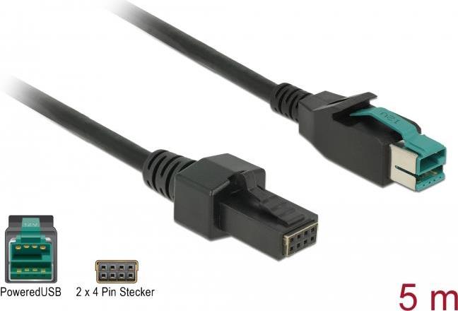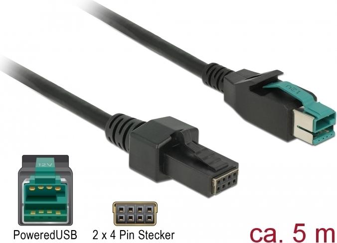 DeLOCK - Powered USB-Kabel - USB PlusPower (12 V) (M) bis 8-polig (2x4) PoweredUSB Remote Side (M) 5,0m - Schwarz (85486)