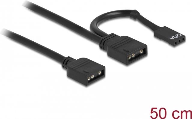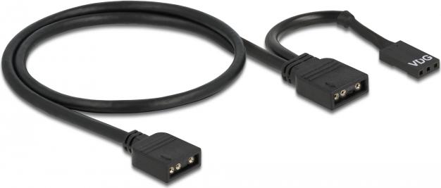 Dieses RGB Kabel von Delock kann an verschiedenen Mainboards z. B. Gigabyte, MSI oder ASRock eingesetzt werden, um eine LED Beleuchtung zu verbinden. Durch die beiden 3 Pin Buchsen kann das Kabel an den Standard 3 Pin Stecker oder den 3 Pin „VDG“ Stecker für die adressierbaren RGBs angeschlossen werden. Der Pfeil an der Buchse gibt die korrekte Einsteckrichtung vor. Anwendung findet dieses Kabel vor allem im Gaming oder Case Modding Bereich.