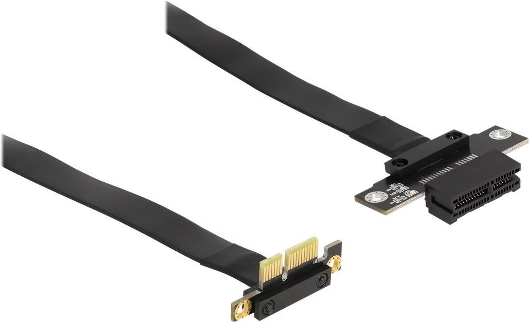Diese PCI Express Riser Card von Delock dient zum Anschluss einer PCI Express x1 Karte. Das flexible Kabel ermöglicht einen platzsparenden Einbau im Computergehäuse.