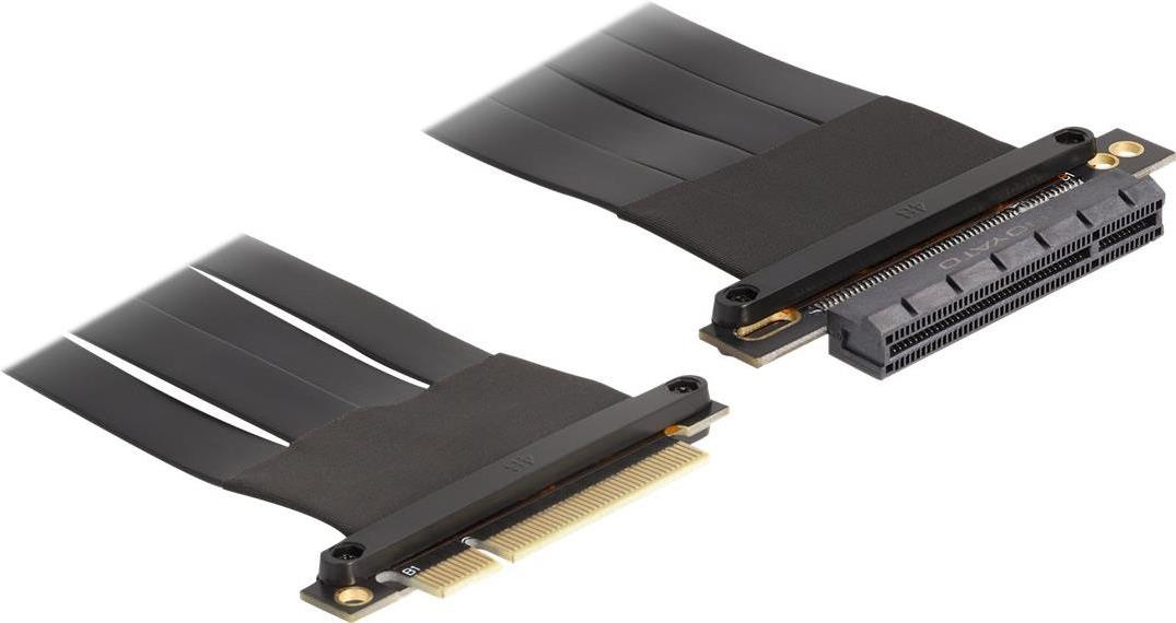 Diese PCI Express Riser Card von Delock dient zum Anschluss einer PCI Express x8 Karte. Das flexible Kabel ermöglicht einen platzsparenden Einbau im Computergehäuse.
