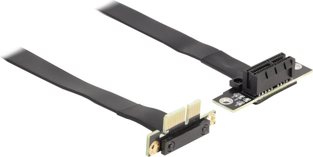Diese PCI Express Riser Card von Delock dient zum Anschluss einer PCI Express x1 Karte. Das flexible Kabel ermöglicht einen platzsparenden Einbau im Computergehäuse.