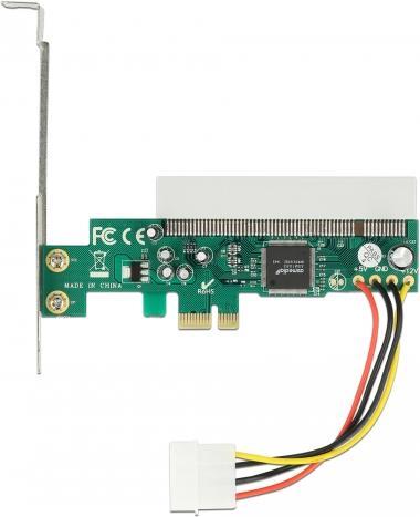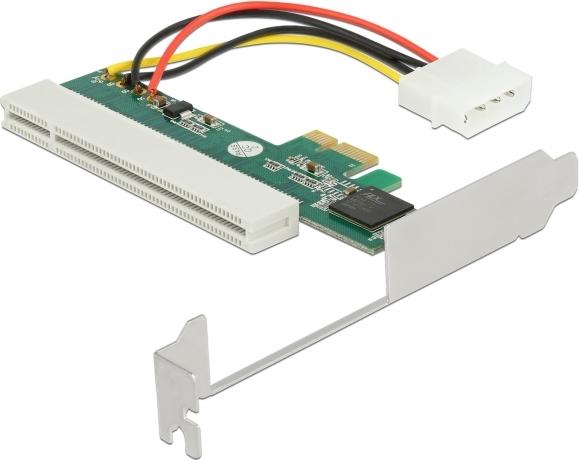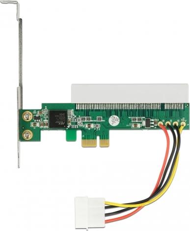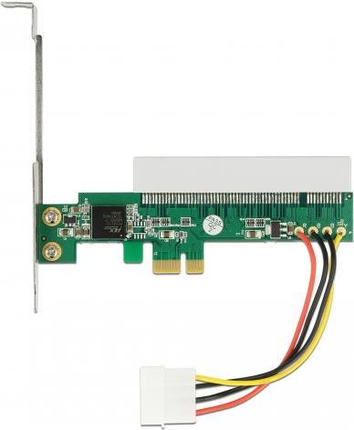 Die PCI Express Riser Karte von Delock ermöglicht den Anschluss von einer PCI Karte über einen PCI Express Anschluss. Die Aussparung in der Slotblende ermöglicht einen externen Anschluss von z. B. Kabel an die eingebaute PCI Karte im PC Gehäuse.