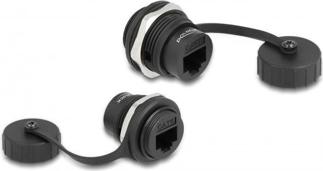 Delock RJ45 Cat.6 Einbaubuchse mit Verschlusskappe IP67 staub- und wasserdicht (86962)