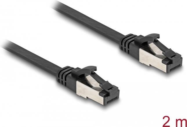 Delock - Patch-Kabel - RJ-45 (M) zu RJ-45 (M) - 2,0m - U/FTP - CAT 8,1 - ohne Haken, flach - Schwarz (80180)