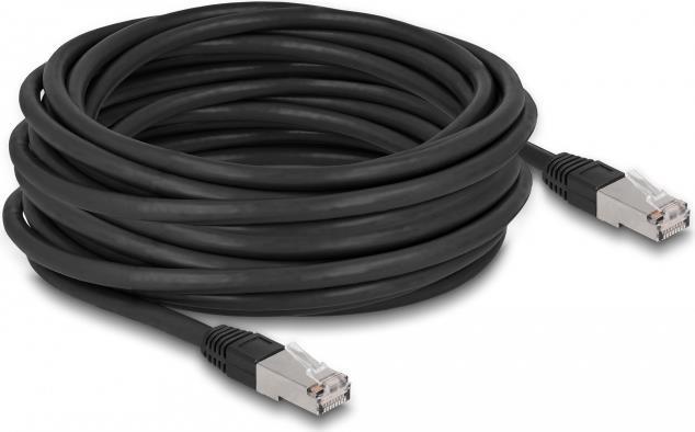 Delock - Patch-Kabel - RJ-45 (M) zu RJ-45 (M) - 10,0m - 7 mm - S/FTP - CAT 6a - halogenfrei, geformt, im Freien - Schwarz (80130)