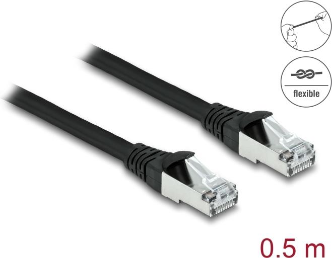 Delock - Patch-Kabel - RJ-45 (M) zu RJ-45 (M) - 50 cm - 6 mm - S/FTP - CAT 6a - geformt, im Freien, ohne Haken - Schwarz