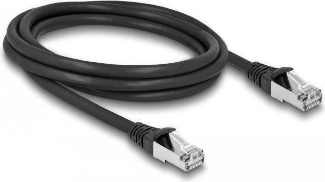 Delock - Patch-Kabel - RJ-45 (M) zu RJ-45 (M) - 2 m - 6 mm - S/FTP - CAT 6a - geformt, im Freien, ohne Haken - Schwarz
