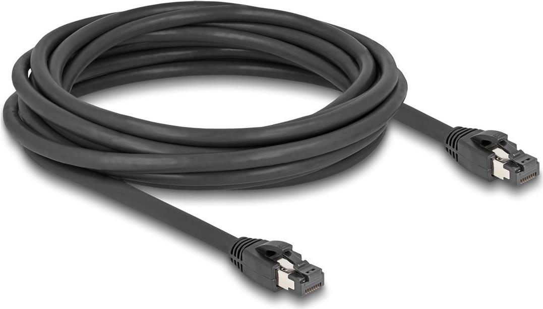 Delock - Netzwerkkabel - RJ-45 (M) zu RJ-45 (M) - 5,0m - 7,5 mm - S/FTP - CAT 8,1 - halogenfrei, ohne Haken, bis zu 40 Gbps Datentransferrate - Schwarz (80236)