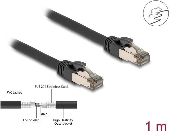 Delock RJ45 Netzwerkkabel Cat.6A U/FTP ultra flexibel mit innerem Metallmantel 1 m schwarz (80240)