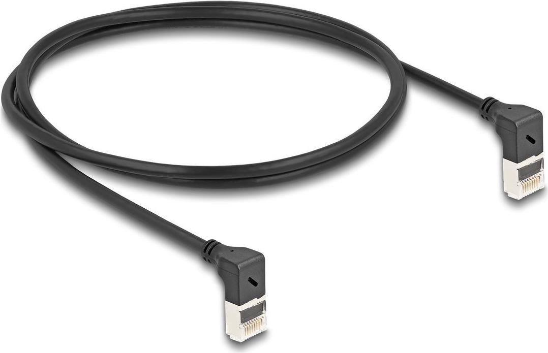 Entdecken Sie das Delock CAT 6a S/FTP Patchkabel, eine Netzwerklösung, die den Anforderungen moderner Netzwerkumgebungen gerecht wird. Dieses Kabel verfügt über ein schlankes Design mit einem American Wire Gauge (AWG) von 30, was es sowohl flexibel als auch effizient für die Organisation Ihrer Netzwerkeinrichtung macht. Das Low Smoke Zero Halogen (LSZH) Mantelmaterial gewährleistet die Umweltsicherheit, indem es giftige Emissionen im Falle eines Feuers reduziert. Darüber hinaus sorgen die um 90° nach oben abgewinkelten RJ-45-Stecker an beiden Enden für eine sichere und zuverlässige Verbindung, insbesondere in engen Räumen, und gewährleisten so eine ununterbrochene Datenübertragung. Ganz gleich, ob Sie ein Heimnetzwerk einrichten oder ein komplexes Rechenzentrum verwalten, dieses Patchkabel bietet die Zuverlässigkeit und Leistung, die Sie für den reibungslosen Betrieb Ihres Netzwerks benötigen.