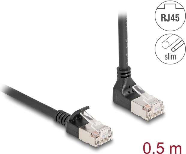 Entdecken Sie das Delock CAT 6a Netzwerkkabel, eine Hochleistungslösung, die den Anforderungen moderner Netzwerkumgebungen gerecht wird. Dieses Kabel verfügt über einen Low Smoke Zero Halogen (LSZH) Mantel, der eine sicherere und haltbarere Option für Ihre Netzwerkanforderungen bietet. Der einzigartige, um 90° nach oben abgewinkelte linke Stecker und der gerade rechte Stecker gewährleisten eine einfache Installation und Kompatibilität mit einer Vielzahl von Netzwerkkonfigurationen. Mit der S/FTP-Technologie bietet dieses Kabel eine verbesserte Signalintegrität und Rauschunterdrückung, ideal für Anwendungen mit hoher Bandbreite. Darüber hinaus erfüllt es mehrere RoHS-Standards und ist somit ein umweltfreundliches Produkt. Ob zu Hause oder im Büro, das Delock CAT 6a Netzwerkkabel ist die zuverlässige Wahl für den Aufbau schneller, sicherer und effizienter Netzwerkverbindungen.