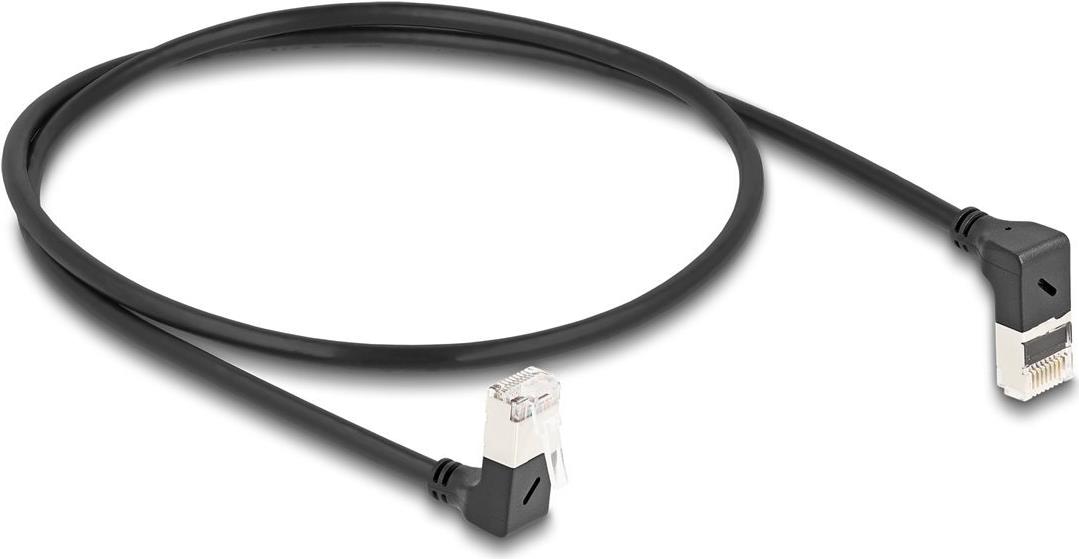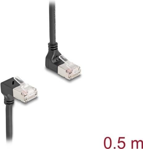 Delock - Patch-Kabel - RJ-45 (M) nach oben angewinkelt zu RJ-45 (M) nach unten abgewinkelt - 50cm - 4,5 mm - S/FTP - CAT 6a - halogenfrei, geformt - Schwarz (80292)