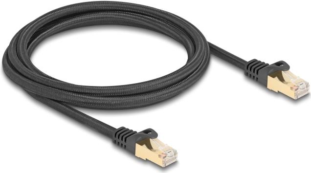 Delock - Patch-Kabel - RJ-45 (M) zu RJ-45 (M) - 2,0m - 7 mm - S/FTP - CAT 6a - ohne Haken, Gewebebeschichtung - Schwarz (80318)