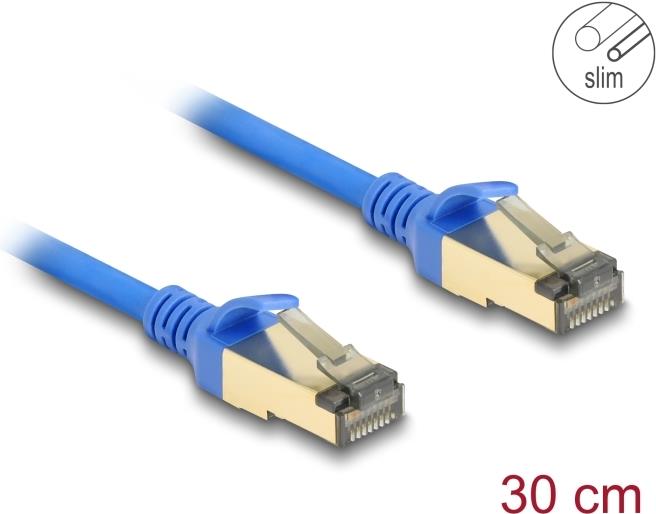 Delock - Patch-Kabel - RJ-45 (M) zu RJ-45 (M) - 30cm - 4,9 mm - F/FTP - CAT 8,1 - halogenfrei, ohne Haken - Blau (80331)