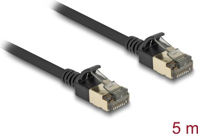 Delock - Netzwerkkabel - RJ-45 (M) zu RJ-45 (M) - 5,0m - 4,5 mm - FTP - CAT 8,1 - halogenfrei, ohne Haken, schmal - Schwarz (80342)