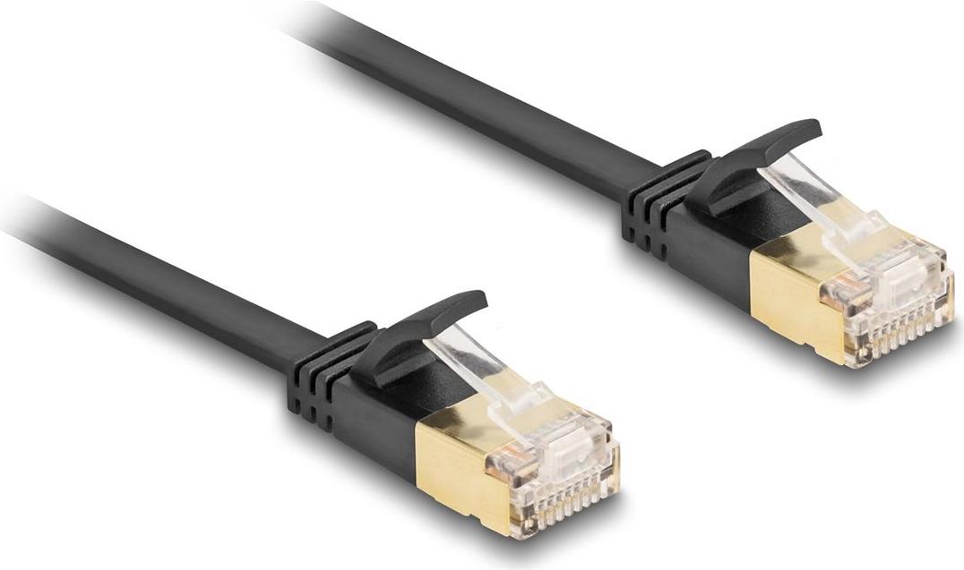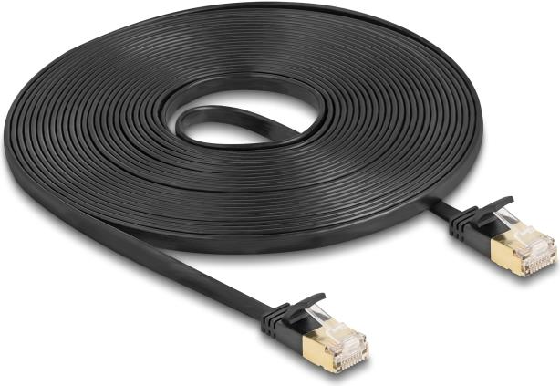 Delock RJ45 Netzwerkkabel Cat.6A Stecker zu Stecker mit robuster Rastnase und Cat.7 Rohflachbandkabel U/FTP 7,5 m schwarz (80349)