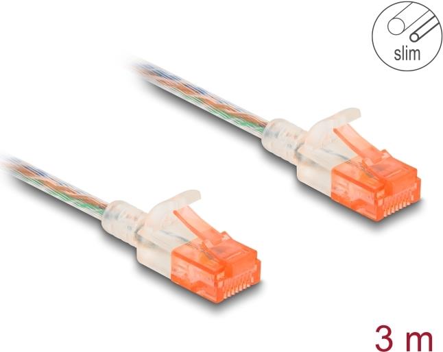 Delock - Netzwerkkabel - RJ-45 (M) zu RJ-45 (M) - 3,0m - 3,5 mm - UTP - CAT 6a - ohne Haken, schmal - durchsichtig (80355)