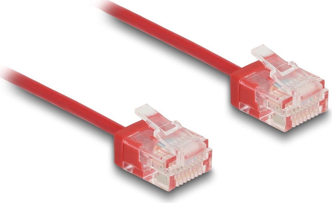 • Delock RJ45 Netzwerkkabel Cat.6 UTP Ultra Slim 0.3 m rot mit kurzen Steckern (80800)