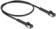 Das Kabeldesign umfasst Snagless- und Booted-Funktionen für eine einfache Einrichtung und dauerhafte Verbindungen. Es ist aus raucharmem, halogenfreiem Material gefertigt und gewährleistet Sicherheit in Umgebungen, in denen reduzierte Rauchemissionen erforderlich sind. Mit seinem schlanken Profil und den abgewinkelten Steckern bietet das Kabel Vielseitigkeit und eine einfache Installation bei engen Platzverhältnissen, während es gleichzeitig extremen Temperaturen von -20°C bis 60°C standhalten kann.