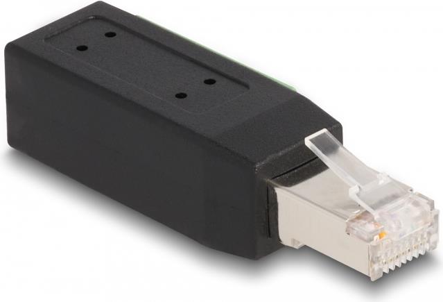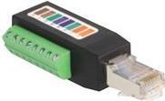 An diesen Terminalblock Adapter von Delock können Litzen mit abisolierten Enden angeschlossen und mit diversen Netzwerkgeräten verbunden werden.