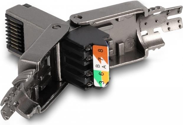 Dieser RJ45 Stecker von Delock kann zum Anschluss von Netzwerkkabeln verwendet werden. Der Stecker lässt sich werkzeugfrei und zeitsparend an verschiedene Kabeltypen montieren.