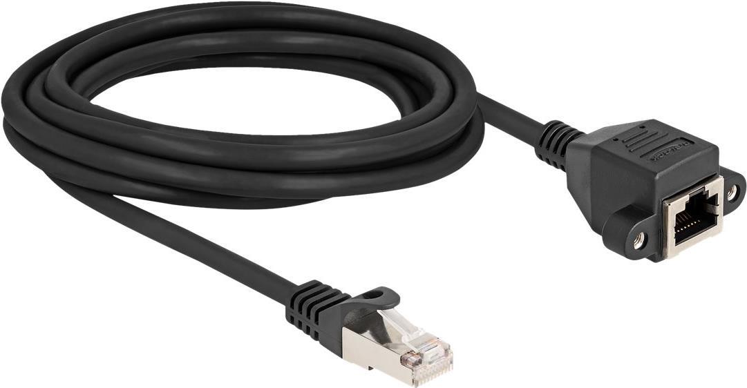 Delock - Netzwerkverlängerungskabel - RJ-50 (M) zu RJ-50 (W) mit Muttern - 3,0m - S/FTP - ohne Haken - Schwarz (80195)