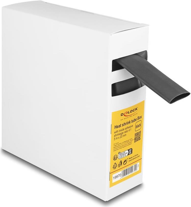 Der Delock-Schrumpfschlauch ist eine vielseitige und dauerhafte Lösung für das Management und den Schutz von Kabeln. Er wurde mit Blick auf Funktionalität und Bequemlichkeit entwickelt und verfügt über ein Schrumpfverhältnis von 4:1, das für eine breite Palette von Kabeldurchmessern geeignet ist. Da die Schläuche Temperaturen von 70° C bis 125° C standhalten, können sie in verschiedenen Umgebungen eingesetzt werden, vom Büro bis zur Industrie. Der aus Polyolefin gefertigte Schlauch bietet eine ausgezeichnete Haltbarkeit und Schutz vor Abrieb und Umwelteinflüssen. Der innen angebrachte Klebstoff erhöht die Sicherheit der Kabel, verhindert ein Verrutschen und sorgt für Ordnung. Der in einer Box verpackte Schrumpfschlauch ist leicht zu lagern und zugänglich und vereinfacht das Kabelmanagement. Ob für den professionellen oder privaten Gebrauch, der Delock-Schrumpfschlauch bietet eine zuverlässige Lösung für den Schutz und die Organisation von Kabeln.