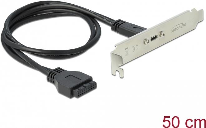 DeLOCK Slot bracket - USB-Konsole - 19-poliger USB3.0 Kopf (W) bis USB-C (W) 900 mA - 50cm - Schwarz (89937)
