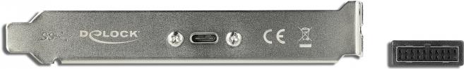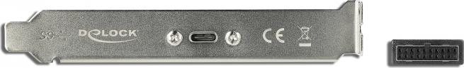 Mit diesem Slotblech von Delock lässt sich ein PC um einen USB Type-C Port erweitern. An dem Port stehen anschließend max. 5 V / 900 mA und eine Datentransferrate von bis zu 5 Gbps zur Verfügung.