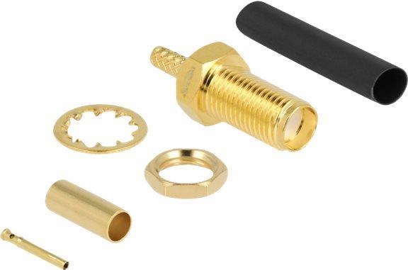 Diese Buchse inklusive passendem Schrumpfschlauch von Delock eignet sich zur Verbindung von Komponenten der Hochfrequenztechnik.