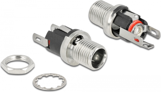 Delock - Netzanschluss - DC-Anschluss 5,5 mm x 12 mm (Innendurchmesser: 2,5 mm) (W) Bulkhead - DC 16 V - 3 A (90057)