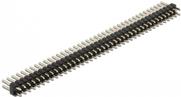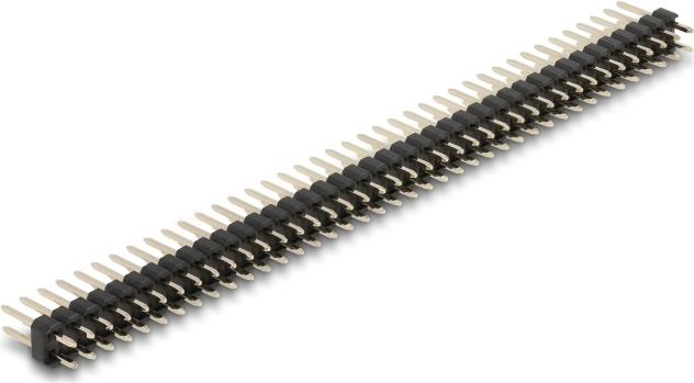 Goldplattierung, 2,54 mm Abstand, -40 °C bis 105 °C Betriebstemperatur, hält bis zu 500 V AC/DC stand, 2-row, contact resistance: 20 mO, isolation resistance: 1000 MO / min, processing temperature: 230 °C (30 - 60 seconds), straight |