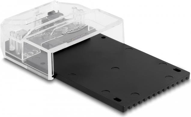 Diese Dockingstation von Delock ermöglicht den externen Anschluss einer 2,5" SATA HDD oder SSD über die USB-Schnittstelle. Diese Lösung benötigt kein externes Gehäuse, da das Laufwerk einfach direkt in die Dockingstation eingesteckt werden kann. Die Unterseite besteht aus einer stabilen Metallplatte mit Kühlrippen. Diese sorgen für eine passive Kühlung des eingelegten Speichers.