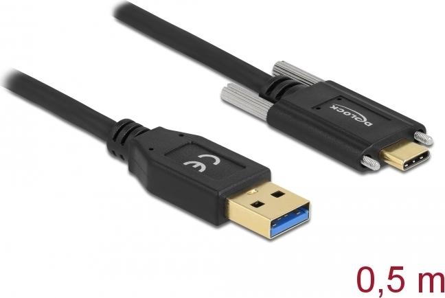 Delock SuperSpeed USB 10 Gbps (USB 3.2 Gen 2) Kabel Typ-A Stecker zu USB Type-C Stecker mit Schrauben (84007)