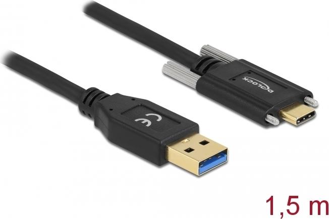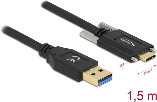 Delock - USB-Kabel - USB Typ A (M) zu USB Typ A (M) schraubbar - USB 3,2 Gen 1 - 3 A - 1,5m - Schwarz (84017)