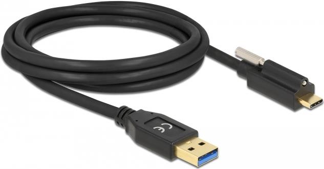 Delock - USB-Kabel - USB Typ A (M) bis USB-C (M) schraubbar - USB 3,2 Gen 1 - 3 A - 2,0m - Schwarz (84031)