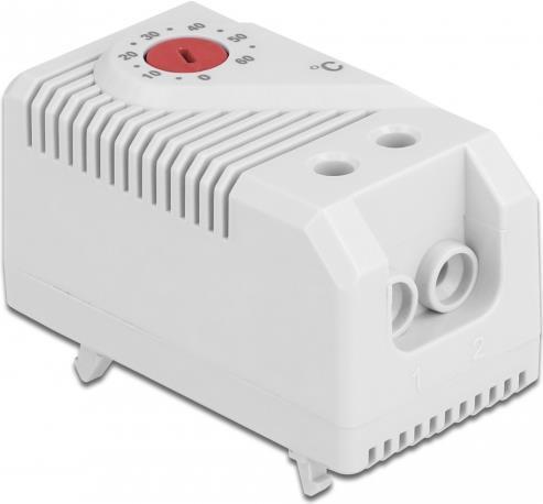 Dieser Thermostat von Delock wird zur Regelung von Heizgeräten oder zum Schalten von Signalgeräten bei Temperaturüberschreitung eingesetzt. Der Kontakt öffnet sich bei steigender Temperatur. Durch die integrierten Clips auf der Rückseite, ist die Montage auf einer 35 mm Hutschiene in einem Schaltschrank möglich.