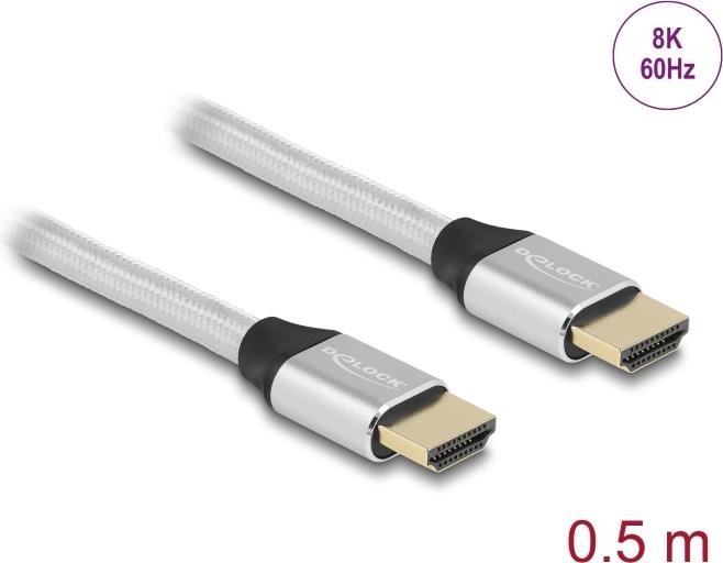 Delock - Ultra High Speed - HDMI-Kabel - HDMI männlich zu HDMI männlich - 50cm - Dreifachisolierung - Silber - hauchvergoldete Kontakte, unterstützt 8K 60 Hz (7680 x 4320) (85365)