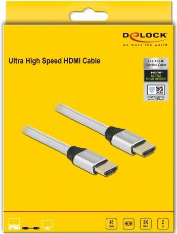 Delock - Ultra High Speed HDMI-Kabel - HDMI männlich bis HDMI männlich - 2,0m - Dreifachisolierung - Silber - hauchvergoldete Kontakte, unterstützt 8K 60 Hz (7680 x 4320) (85367)